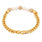 Introducing the Pearl of Wisdom Bracelet - a perfect combination of quality craftsmanship and unique design. Made with stunning pearls and stylish Cuban links, this Bracelet is a must-have for any jewelry enthusiast. Don't miss out on this one-of-a-kind piece.
