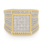 Shinning in any light comes the solid, .925 Sterling Silver Cubist Ring that provides a sturdy, heavy ring perfect for any occasion. Each Ring features AAA, handset CZ rings and includes a micron, plated 14K Gold bottom and a white-gold plated top to give this ring its iconic appearance.