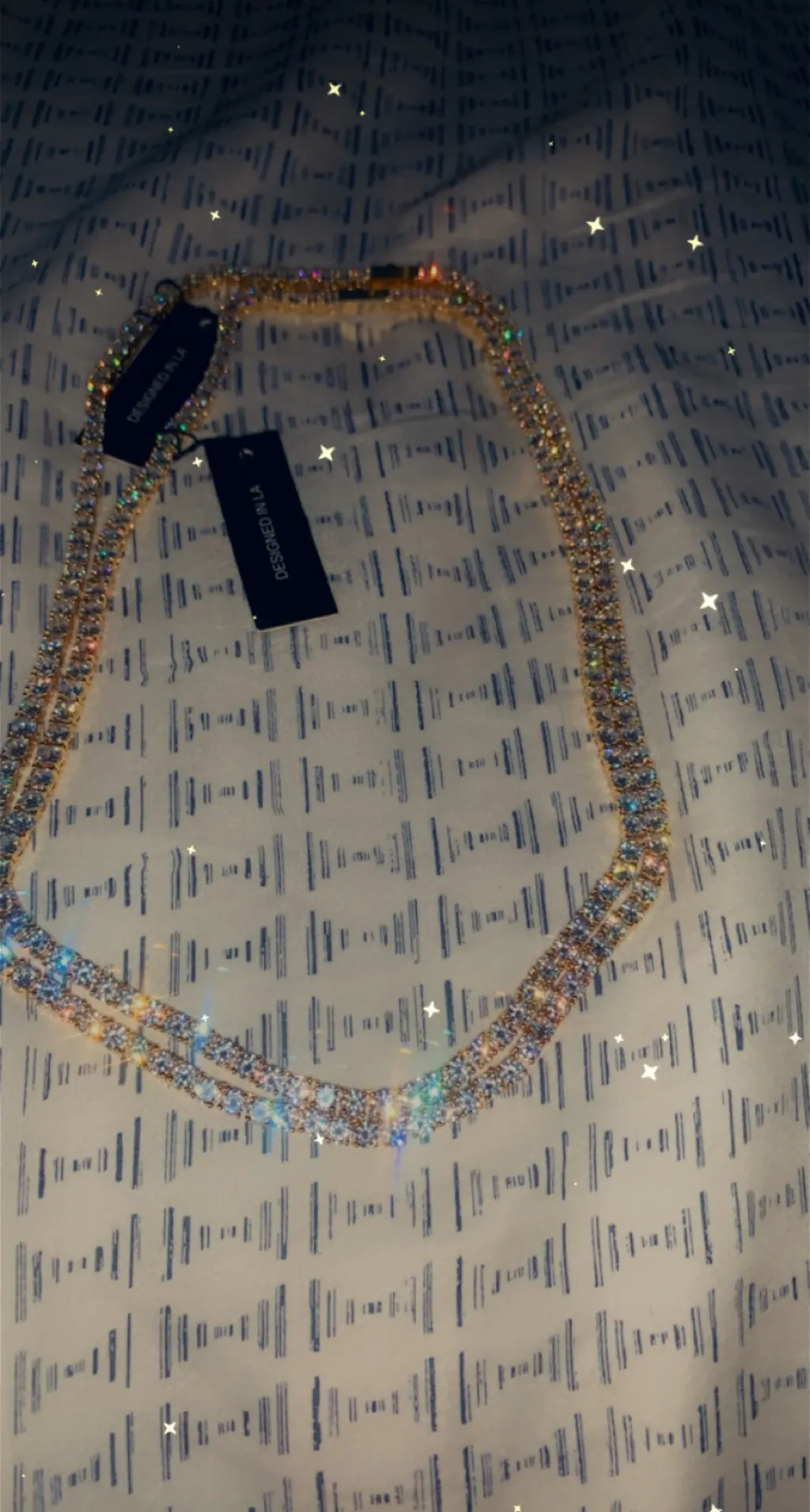 The new King Ice 4mm 14K Gold Tennis Choker Set pays tribute to the multi use trend rooted by prominent hip hop artists since the late 70s. Each choker is plated with a 14K Gold finish and gold prongs frame VVS Diamond Simulates. The chokers measure 18" and 20" for a suitable match when worn together.