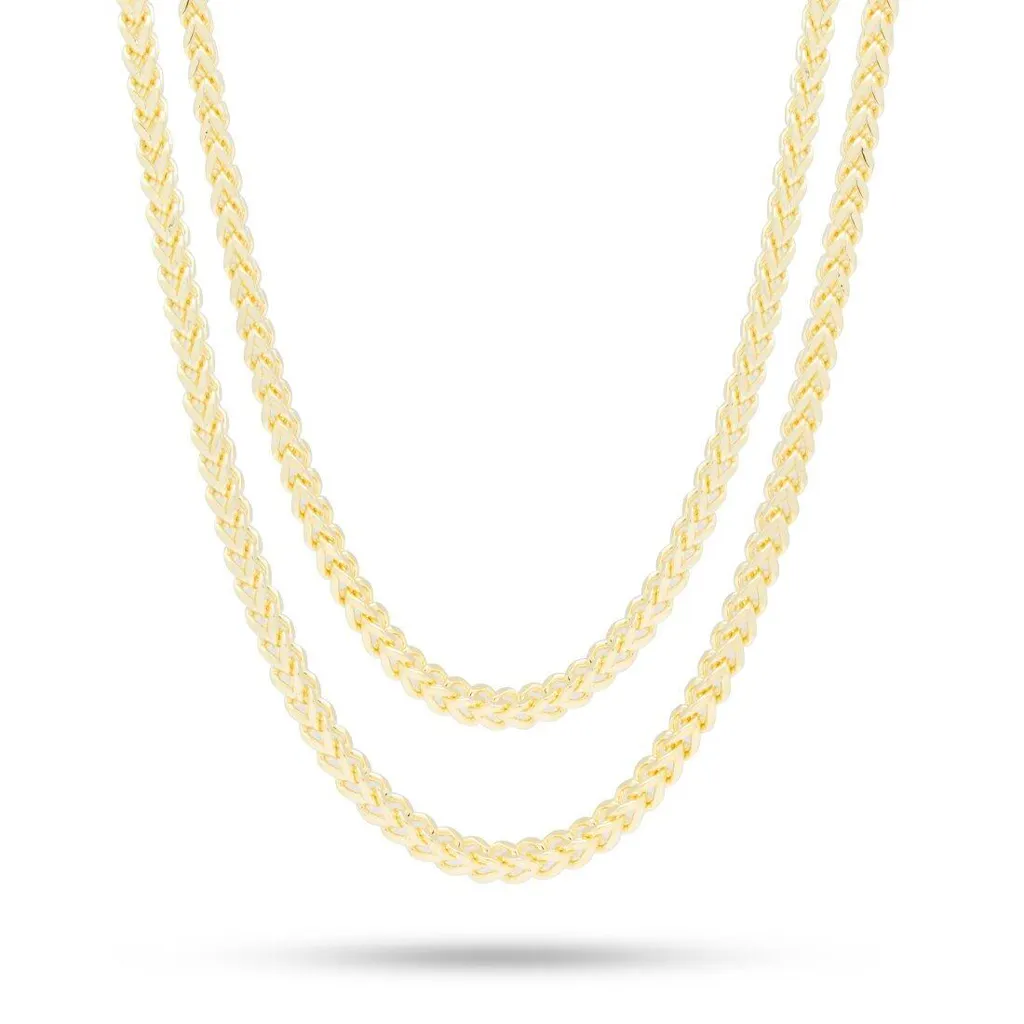 Even though it has a subtle look, the 5mm 14K Gold Stainless Steel Franco Choker Set pays tribute to hip-hop culture. The 18" and 20" choker set is plated with a 14K Gold finish for that fresh look and feel.
