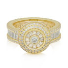 With a smaller cluster compared to other King Ice classics, this Cluster Ring has over 100 handset VVS Diamond Simulate stones. Brilliant and Baguette-Cut stones surround the ring and a custom Greek-Key pattern details the inner band