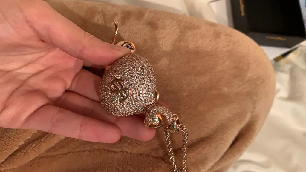 Our Money Bag Stash Necklace includes a hidden stash to store all your goods. Each Studded version includes a matching 24", 4mm rope chain to give this piece its iconic look and feel. The piece is available in 14K Gold plating, white gold plating.